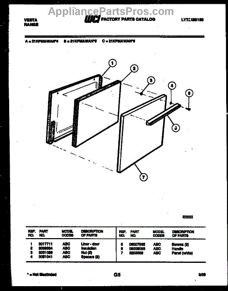 Parts for Frigidaire 21KPMAWAN6: 03 - Door Parts