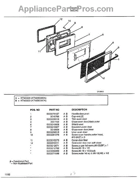 What's included: One oven door seal. Install notes: