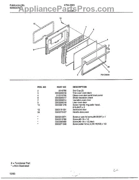 The handle can become worn or damaged over time due to regular use, exposure to heat, or accidental impact. Repeated opening and closing of the oven door can lead to loosening or breakage.