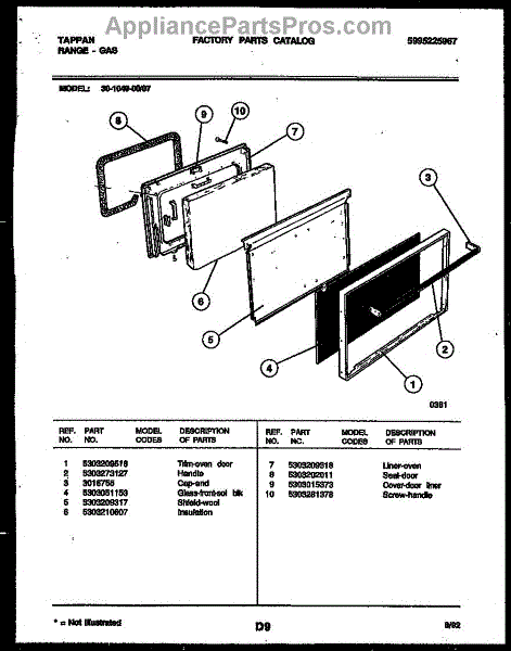 Parts for Frigidaire 30-1049-23-07: 05 - Door Parts