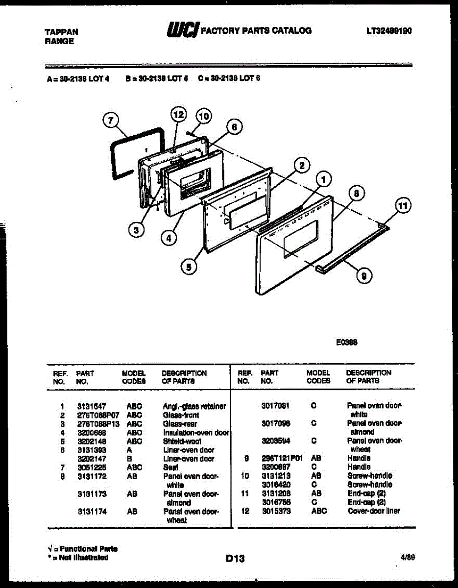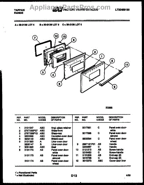 Parts for Frigidaire 30-2138-66-04: 04 - Door Parts
