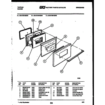 Parts for Frigidaire 30-2139-23-04: Door Parts