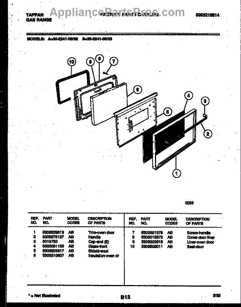Parts for Frigidaire 30-2241-00-03: 05 - Door Parts