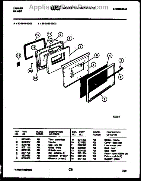 Parts for Frigidaire 30-2549-23-02: 05 - Door Parts