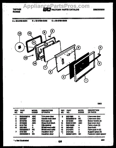 Parts for Frigidaire 30-2759-00-02: 06 - Door Parts