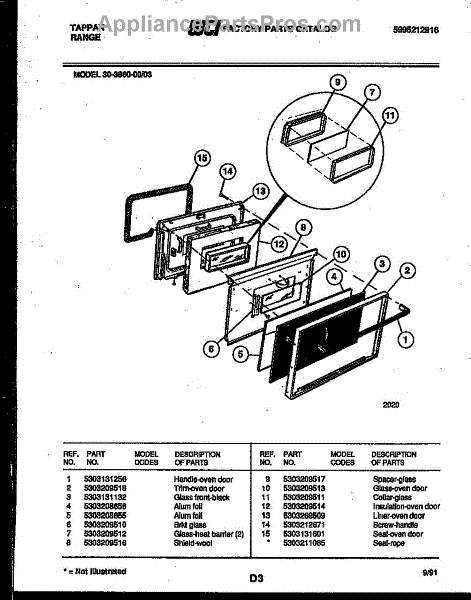 Parts for Frigidaire 30-3860-23-03: 05 - Door Parts