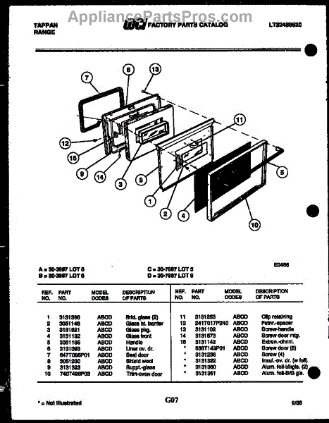 Parts for Frigidaire 30-3987-00-05: 03 - Door Parts