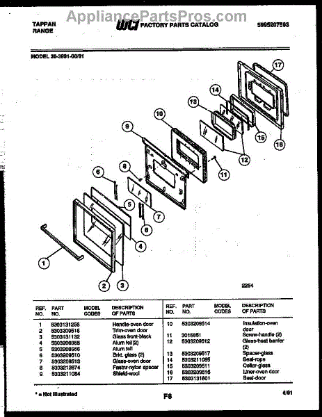 Parts for Frigidaire 30-3991-00-01: 05 - Door Parts