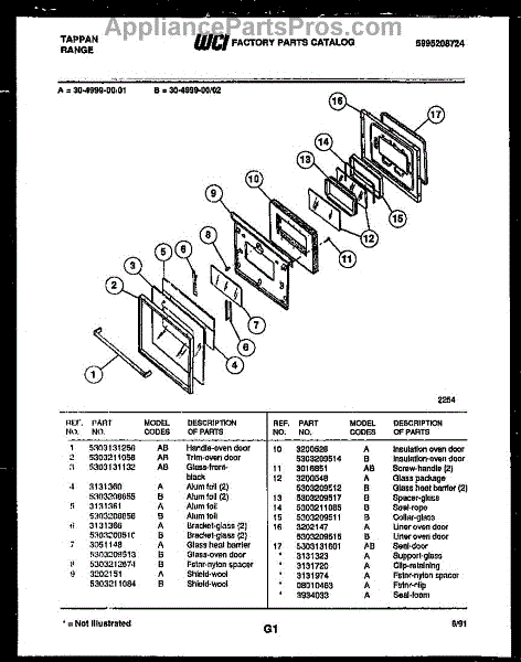 Parts for Frigidaire 30-4999-00-02: 04 - Door Parts