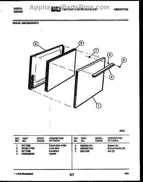 Parts for Frigidaire 30KEMAWAD5: 04 - Door Parts