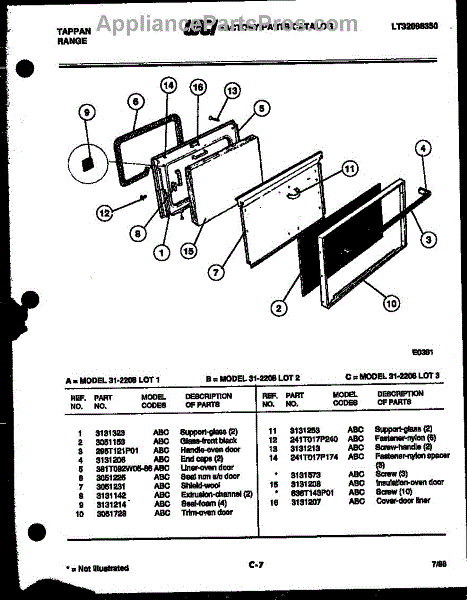 Parts for Frigidaire 31-2208-00-02: 06 - Door Parts