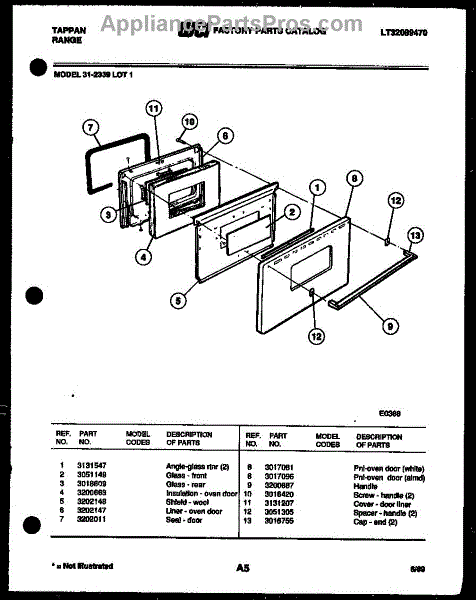 Parts for Frigidaire 31-2339-23-01: 04 - Door Parts