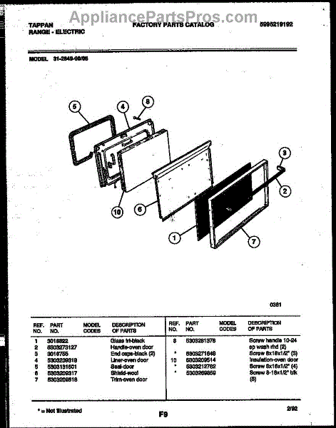 Parts for Frigidaire 31-2649-00-05: 02 - Door Parts