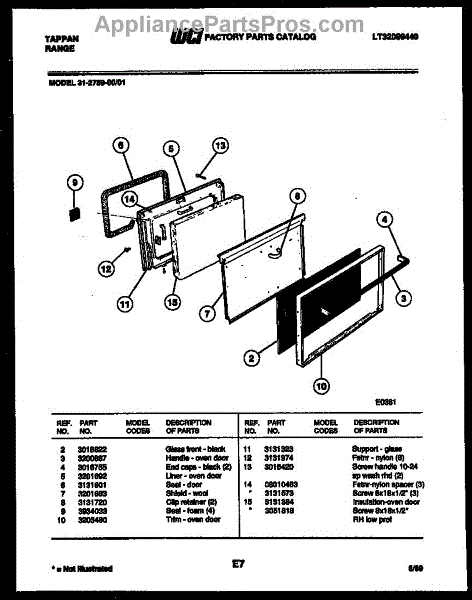 Parts for Frigidaire 31-2759-00-01: 02 - Door Parts