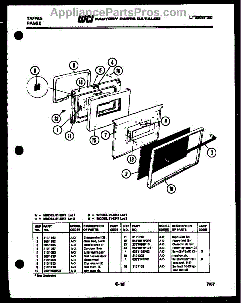 Parts for Frigidaire 31-3347-66-01: 04 - Door Parts