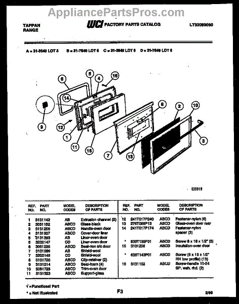 Parts for Frigidaire 31-3648-00-05: 02 - Door Parts