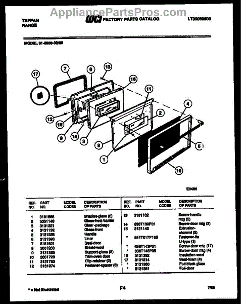 Parts for Frigidaire 31-3988-00-05: 03 - Door Parts
