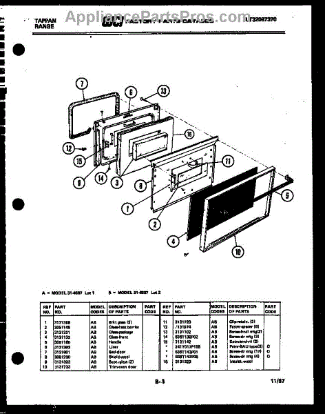 Parts for Frigidaire 31-4967-66-01: 07 - Door Parts