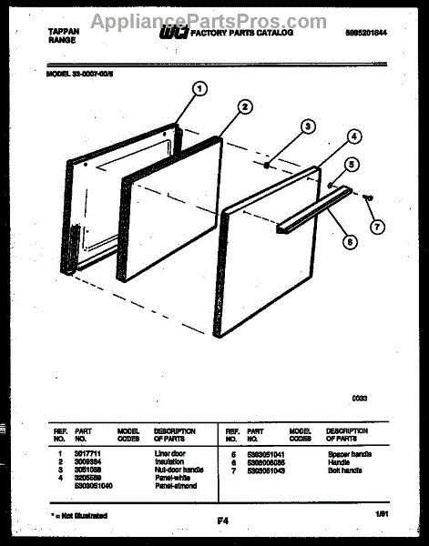 Parts for Frigidaire 32-0007-00-05: 04 - Door Parts