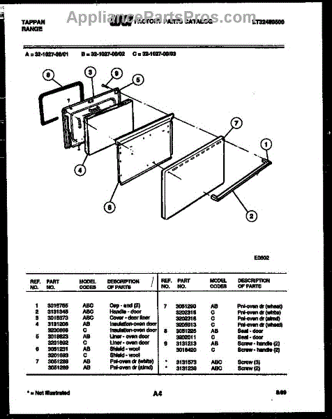 Parts for Frigidaire 32-1027-23-01: 04 - Door Parts