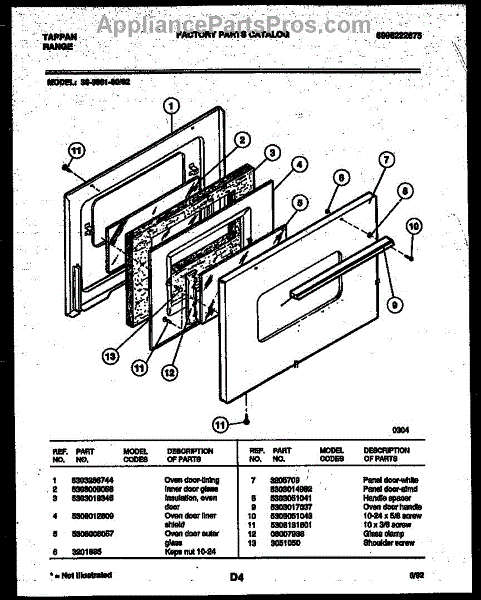 Parts for Frigidaire 36-3061-00-02: 04 - Door Parts