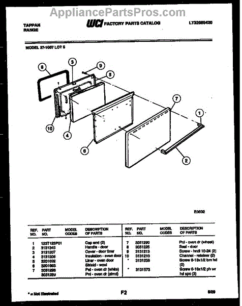 Parts for Frigidaire 37-1007-00-05: 02 - Door Parts