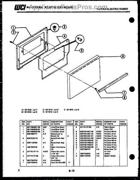 Parts for Frigidaire 37-1015-00-01: 05 - Door Parts