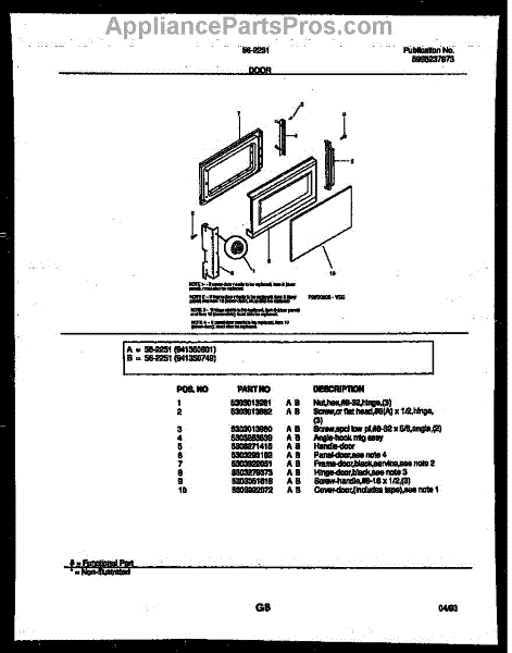 Parts for Frigidaire 56-2251-10-04: 03 - Door Parts