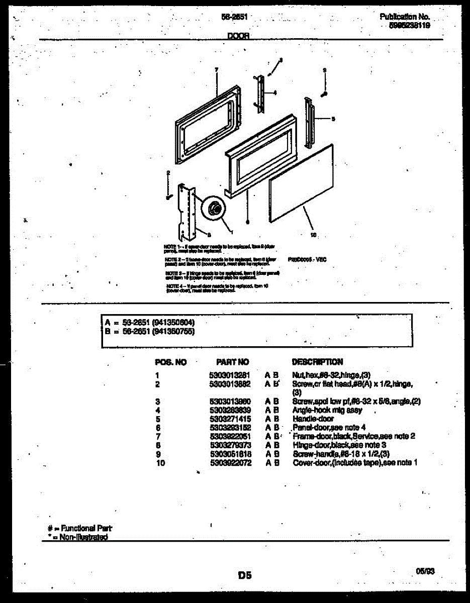 Parts for Frigidaire 56-2651-10-04: 03 - Door Parts