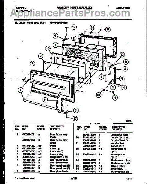Parts for Frigidaire 56-2891-10-01: 07 - Door Parts
