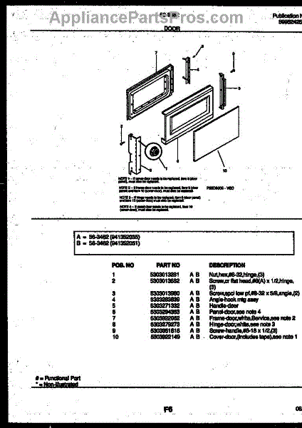 Parts for Frigidaire 56-3462-10-04: 03 - Door Parts