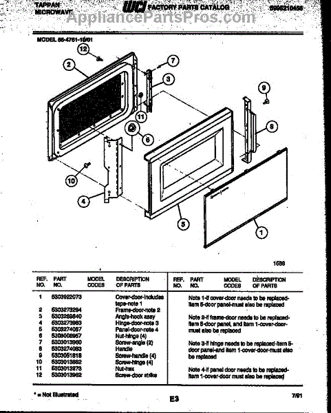 Parts for Frigidaire 56-4751-10-01: 03 - Door Parts