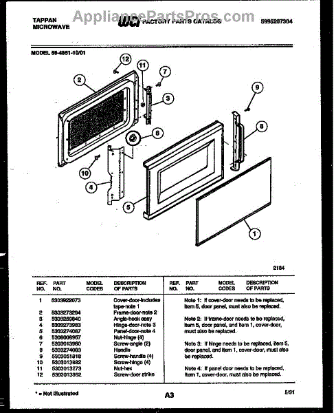 Parts for Frigidaire 56-4851-10-01: 03 - Door Parts