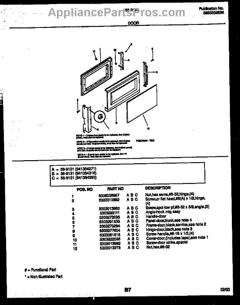 Parts for Frigidaire 56-9131-10-03: 03 - Door Parts