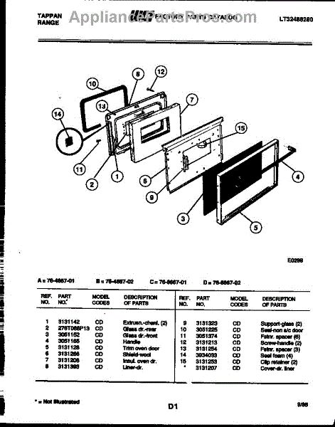 Parts for Frigidaire 76-8667-08-02: 05 - Door Parts