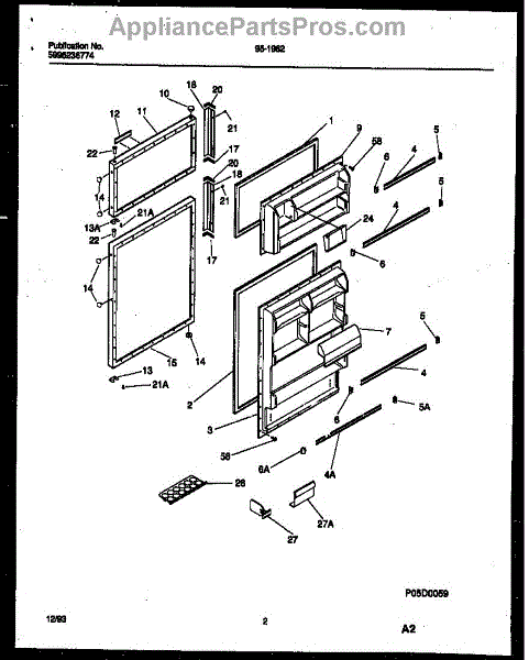 The Refrigerator Door Gasket is an OEM part for Frigidaire refrigerators. This gasket forms a seal around the refrigerator door, ensuring that cold air stays inside and warm air remains outside, maintaining the appliance's efficiency and keeping food fresh.The gasket measures approximately 44.6" X 30.69"