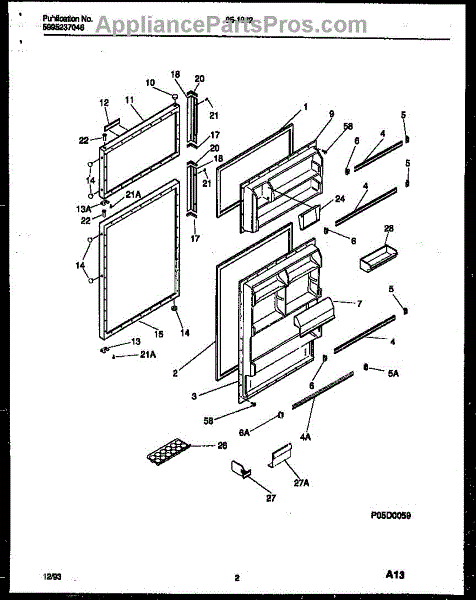 The Refrigerator Door Gasket is an OEM part for Frigidaire refrigerators. This gasket forms a seal around the refrigerator door, ensuring that cold air stays inside and warm air remains outside, maintaining the appliance's efficiency and keeping food fresh.The gasket measures approximately 44.6" X 30.69"