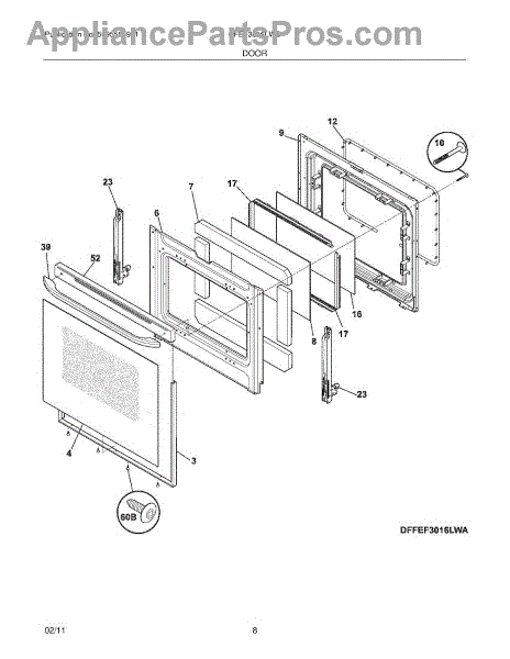 Parts for Frigidaire CFEF3016LWD: 09 - Door Parts