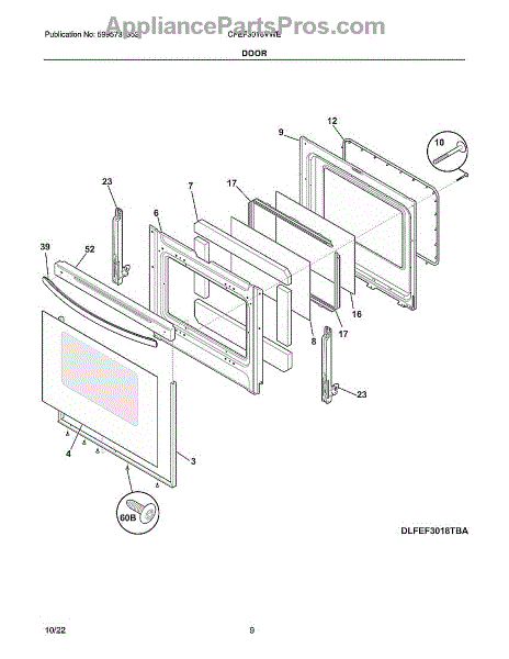 The Door Handle is an OEM part for Frigidaire ovens. This handle is designed to provide a secure grip for opening and closing the oven door. It is essential for safely accessing the oven's interior, ensuring convenience and ease of use while cooking or cleaning.