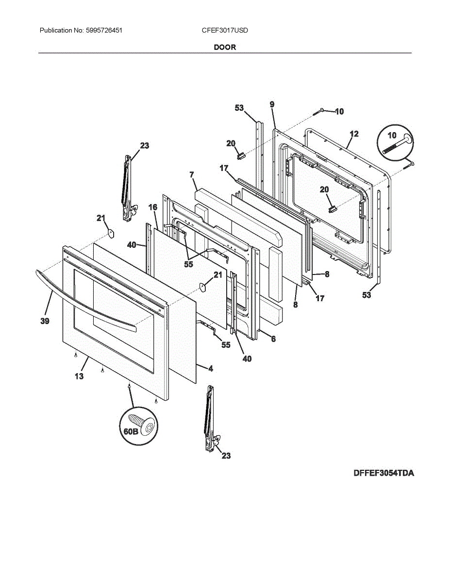 Securely attaches the oven door to the range cabinet. Replace if your hinge is cracked, bent, worn, or causing the door to hang unevenly or not close properly.