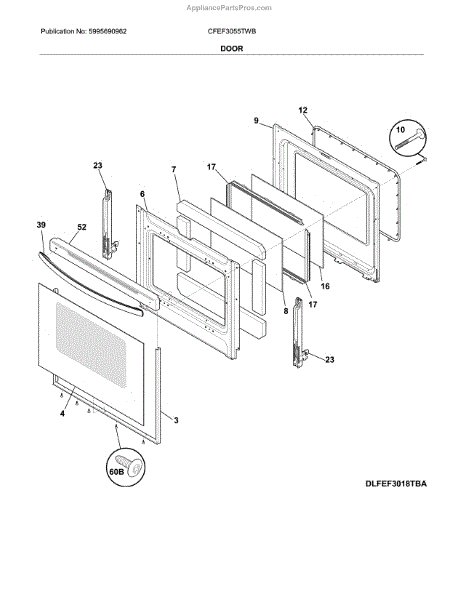 Parts for Frigidaire CFEF3055TWB: Door Parts