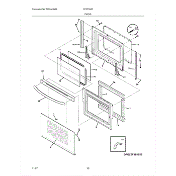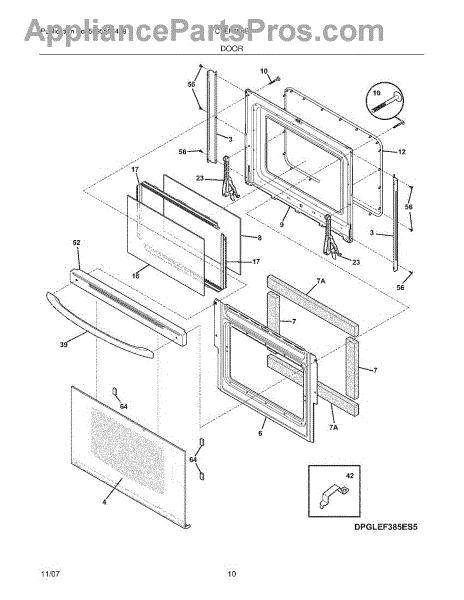 Inner door glass panel for range and wall oven doors. Replace if cracked, shattered, or slipped out of position. Installs between outer glass and oven cavity.