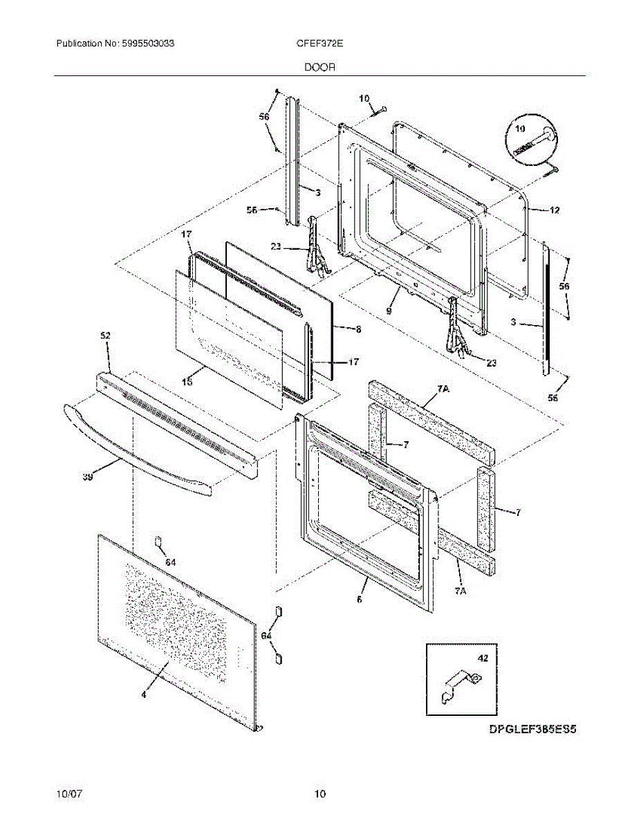Inner door glass panel for range and wall oven doors. Replace if cracked, shattered, or slipped out of position. Installs between outer glass and oven cavity.