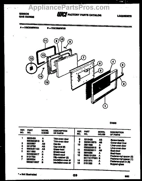 Parts for Frigidaire CGC3M6WXA: 05 - Door Parts