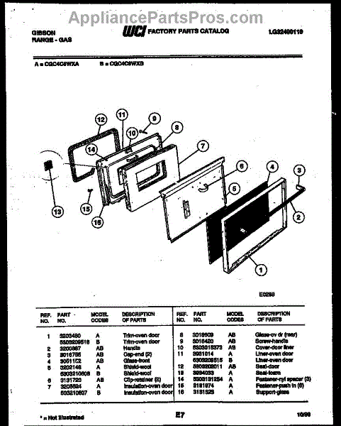 Parts for Frigidaire CGC4C6WXB: 05 - Door Parts