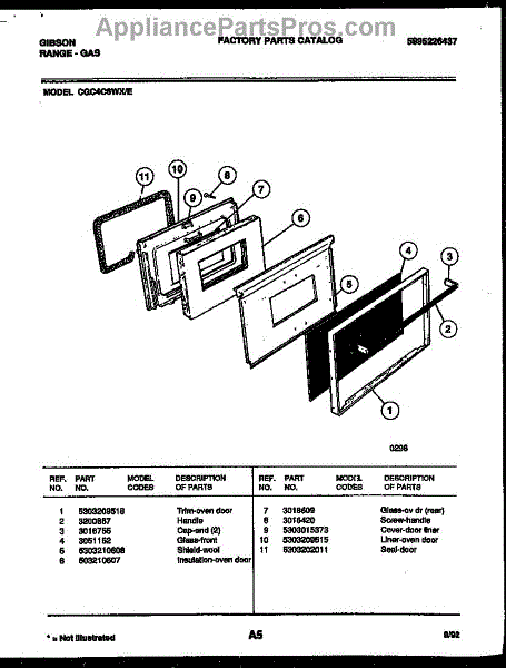 Parts for Frigidaire CGC4C6WXE: 05 - Door Parts