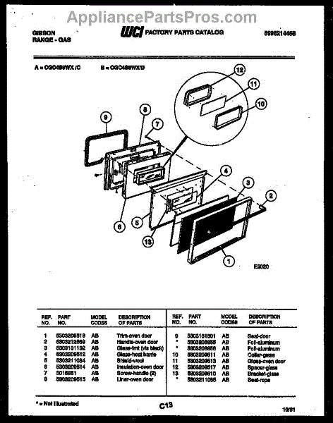 Parts for Frigidaire CGC4S8WXD: 04 - Door Parts