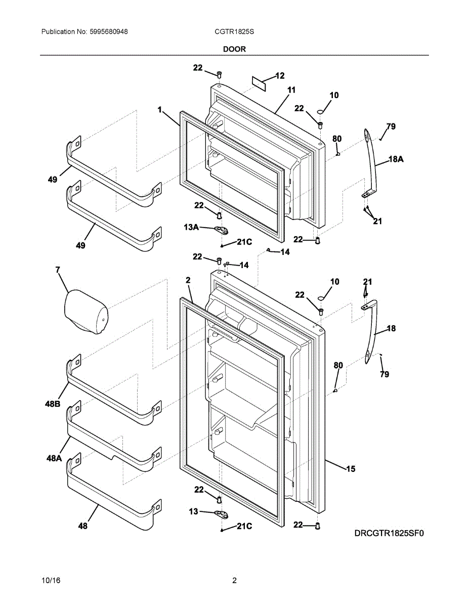 This part is a complete freezer door intended for top freezer refrigerators.Before installing this part, make sure to unplug the refrigerator or turn off the circuit breaker. To replace the door, locate the hinges that attach it. Near the hinges, find the screws that secure the hinge and unthread them. Pull the door out from the hinge and set it to the side. Place the new door on the hinge and secure the screws that hold it in place. This genuine OEM replacement complete freezer door is compatible with Frigidaire, Electrolux, Gibson, Kelvinator, Westinghouse, and Sears/Kenmore brand refrigerators.