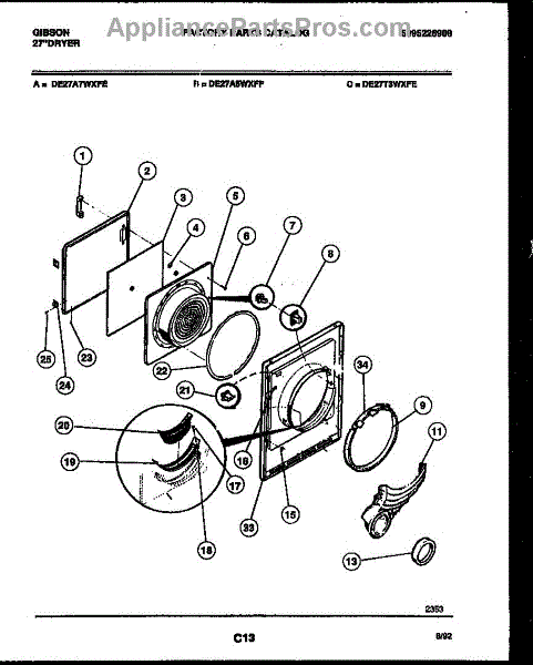 Parts for Frigidaire DE27T3WXFE: 03 - Door Parts