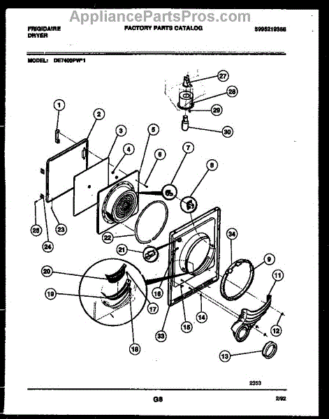 Parts for Frigidaire DE7400PW1: 03 - Door Parts
